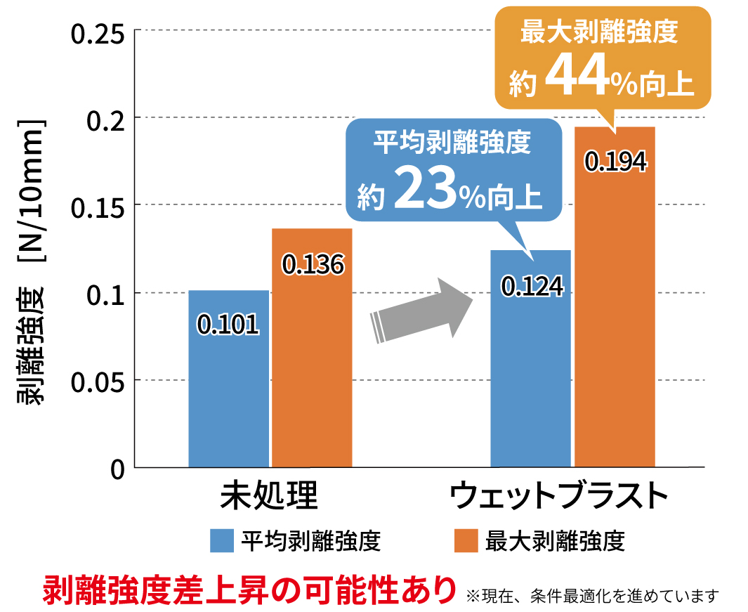 2.ウェットブラストによる密着力向上(90度剥離試験結果)