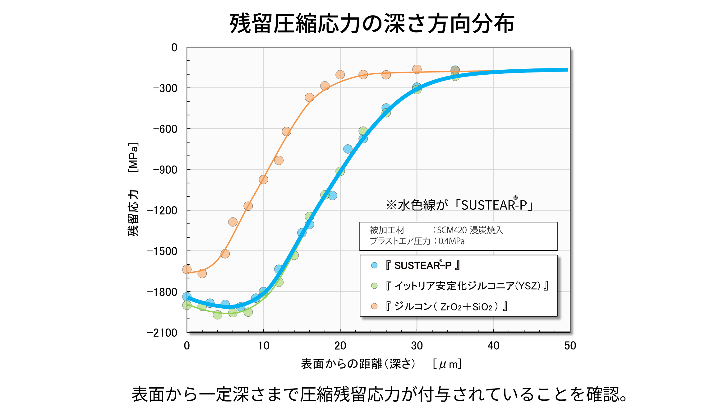 - 新投射材SUSTEAR🄬-Pで歯面粗さを抑制し、圧縮残留応力を付与