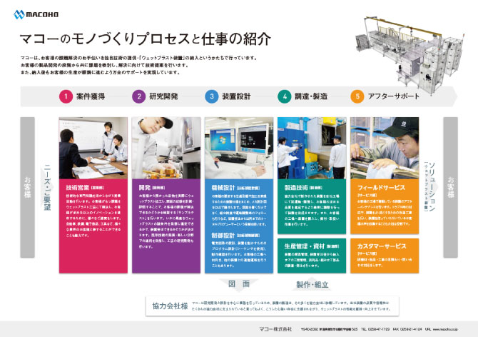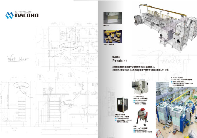 当社の会社案内です。当社事業内容や、コア技術であるウェットブラスト工法、また、その主な納入先業界と用途や装置例をご覧いただけます。